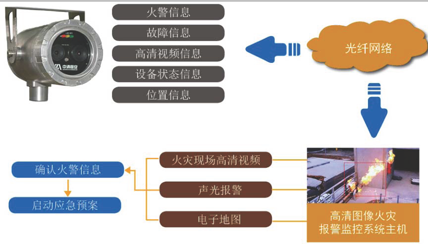 91在线视频高清圖像火災(zāi)報警監控係統屬於新一代圖像火災探測報警監控係統,非接觸式探測方式,由前端VFD/F-ZX518高清圖像型火災探(tàn)測器部分、控製中心ZXVK高清圖像火災報警監控係統主機部分和消防(fáng)聯動部分三個部分組成。